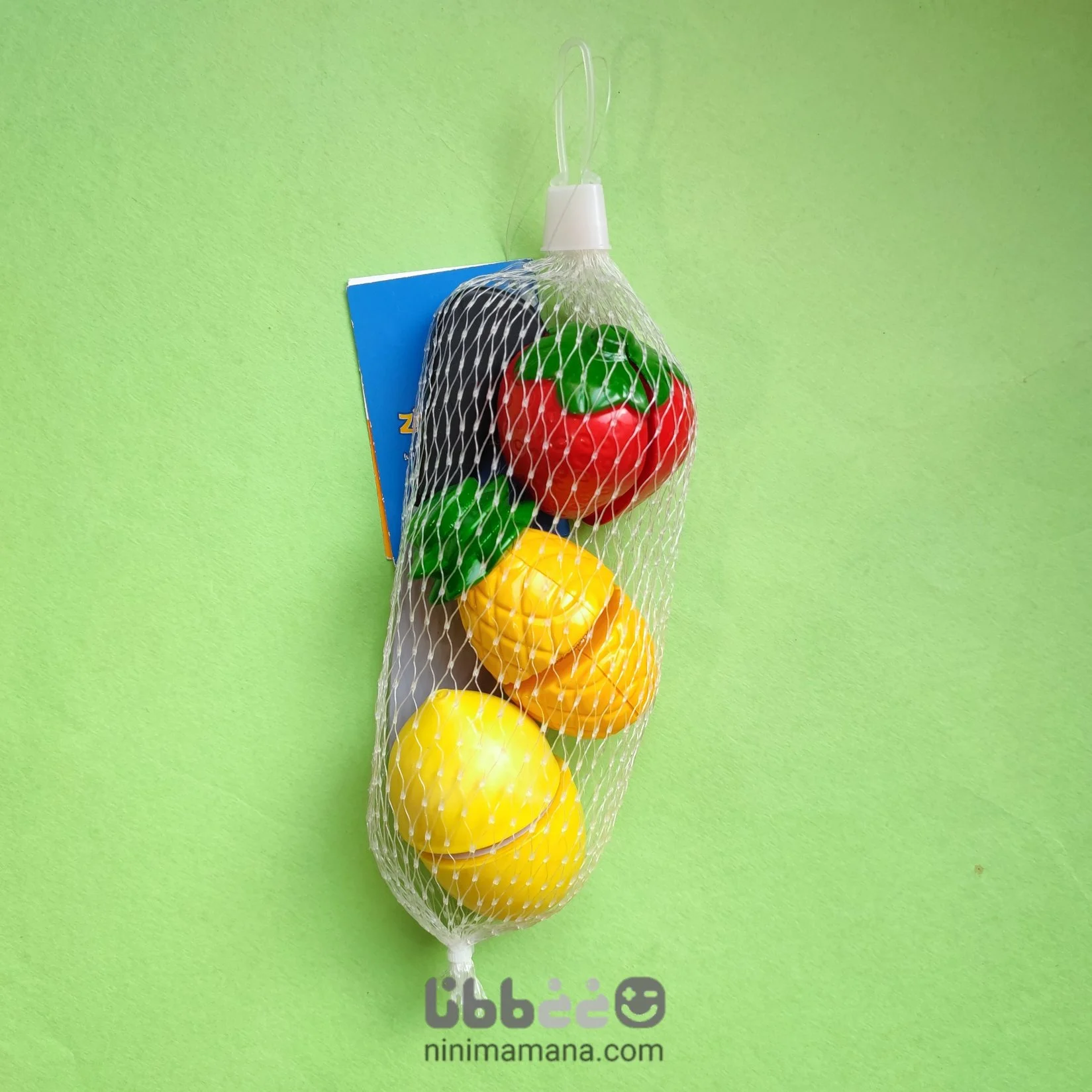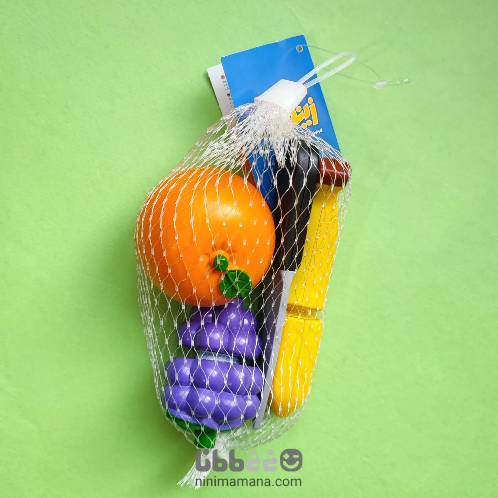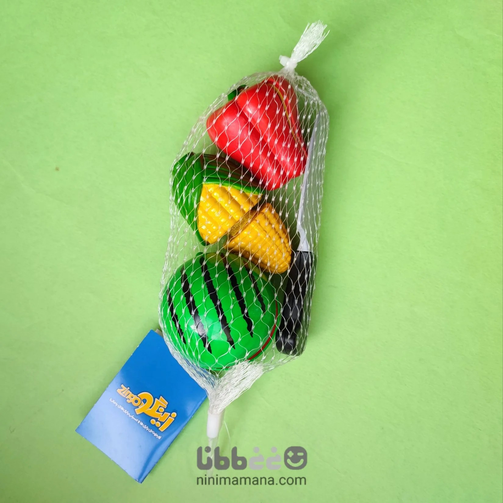 در بسته اسباب بازی میوه های برشی میوه‌ های مختلفی به همراه یک چاقوی پلاستیکی بی‌خطر و یک تخته برش قرار دارد. تمام میوه ها از وسط قابلیت نصف شده را دارند و میتوان دوباره آنها را به هم وصل کرد. کودک شما با فشار مختصری که با چاقو به میوه وارد میکند علاوه بر اینکه برای خود ایجاد سرگرمی میکند به تقویت عضلات دست وی نیز کمک می شود.