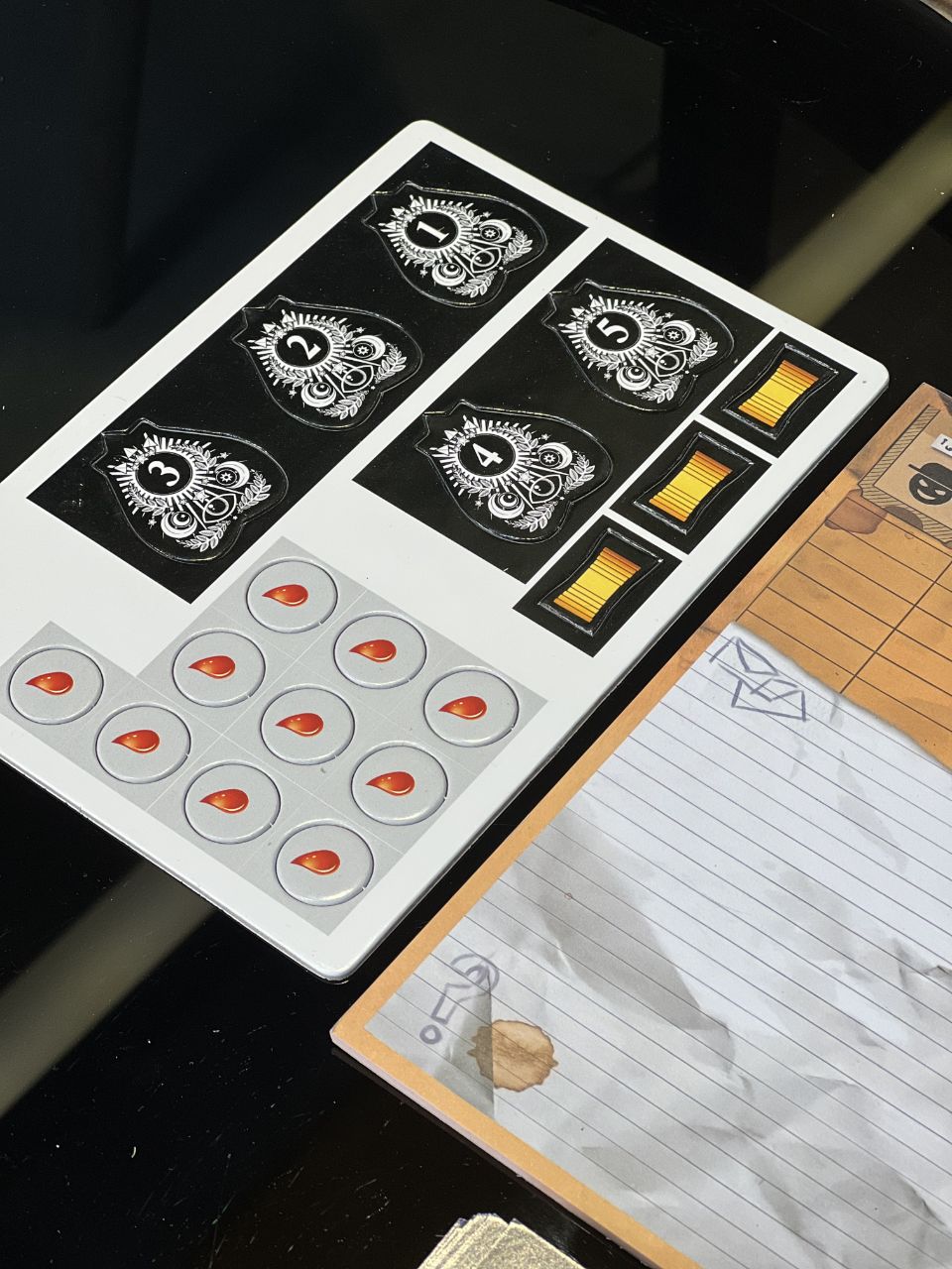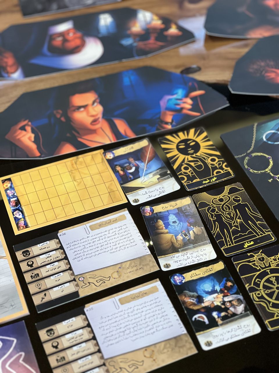 3 تا کارت تعامل روح / 5 تا حفاظ / 1 دفترچه تحقیقات / 1 برگهی روح / 1 صفحهی قلمزنی