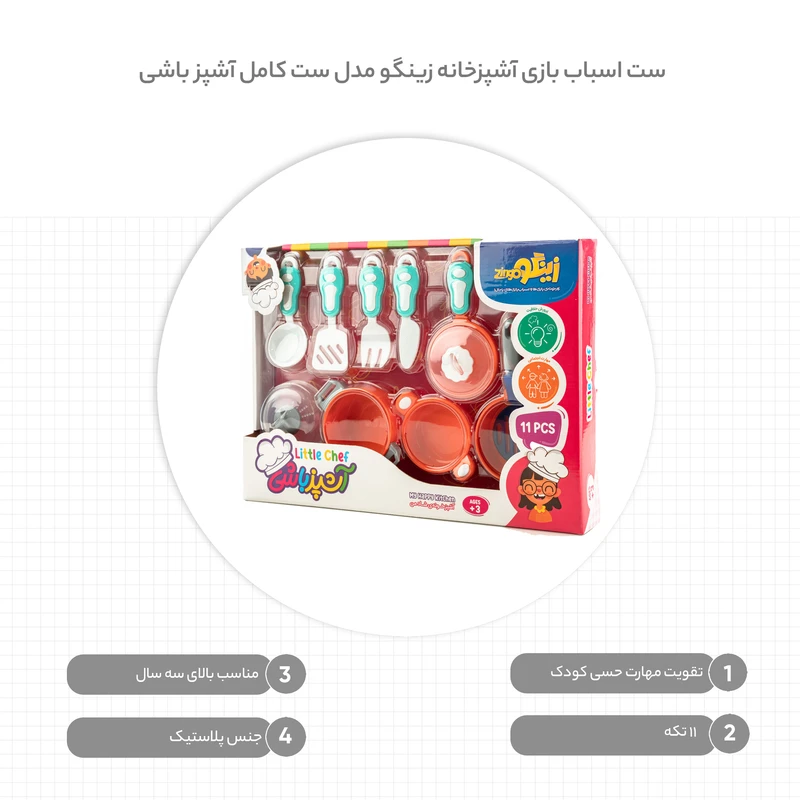 اسباب بازی ست کامل آشپزباشی از برند محبوب «زینگو» (Zingo)، یه اسباب بازی جذاب و سرگرمکننده برای کودکانیه که عاشق بازیهای نقشآفرینی و آشپزی هستن.