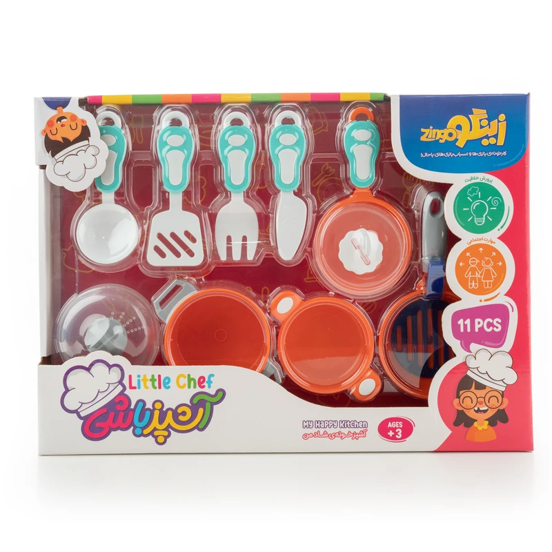 این ست دوستداشتنی، شامل ۱۱ قطعه از وسایل آشپزخونه میشه و کودکان میتونن با اون ساعتها سرگرم بشن و حسابی خوش بگذرونن. ست کامل آشپزباشی زینگو، علاوه بر سرگرمی، به تقویت مهارتهای مختلف کودکان هم کمک میکنه.