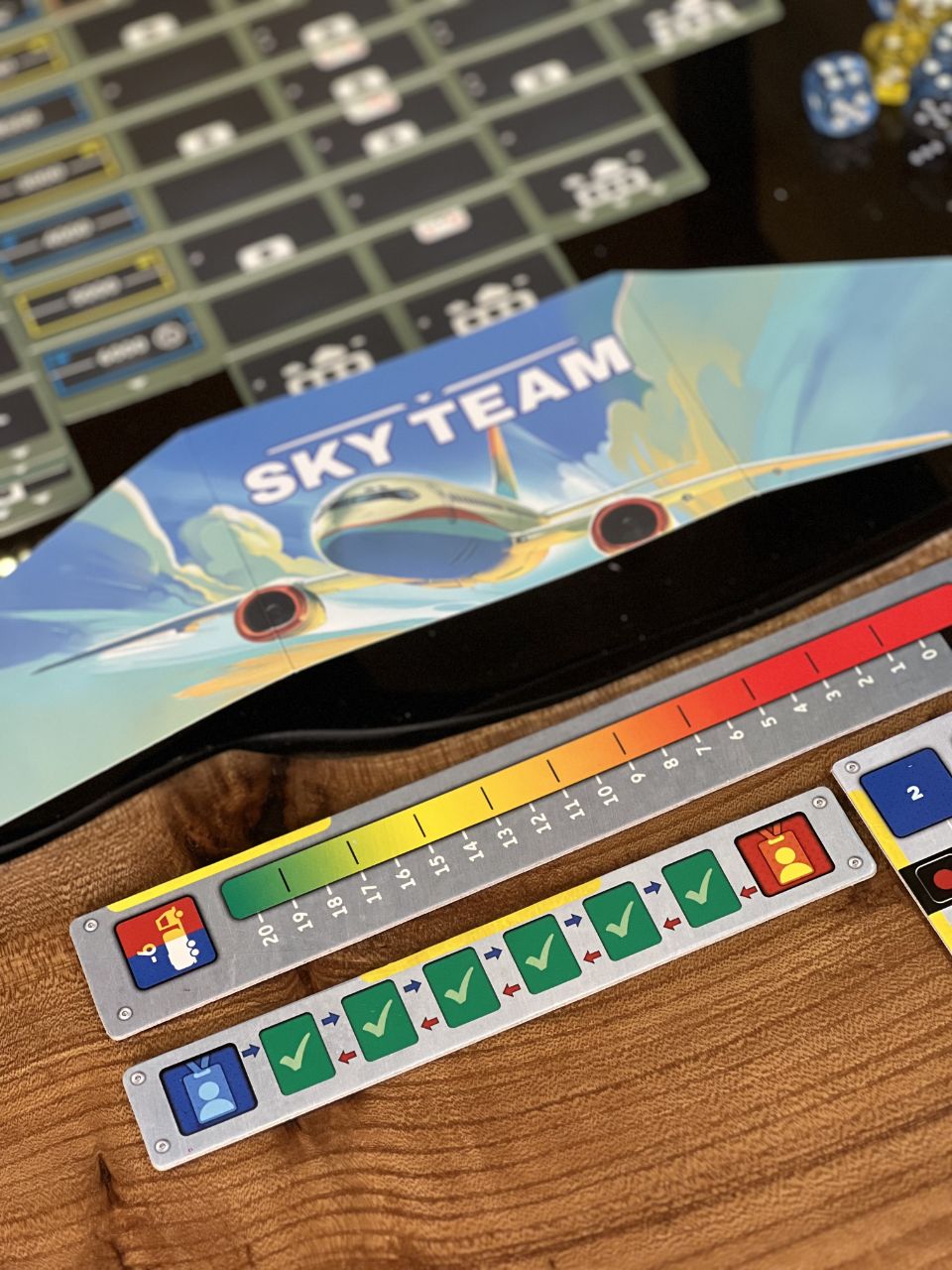 یکی از اولین چیزهایی که پس از باز کردن جعبه اسکای تیم شما را شگفتزده میکند، کیفیت بالای قطعات و طراحی هوشمندانه آنهاست که کاملاً در خدمت تم بازی قرار دارد. این قطعات صرفاً ابزاری برای بازی نیستند، بلکه بخشی از تجربه شبیهسازی و غرق شدن در نقش خلبان هستند.