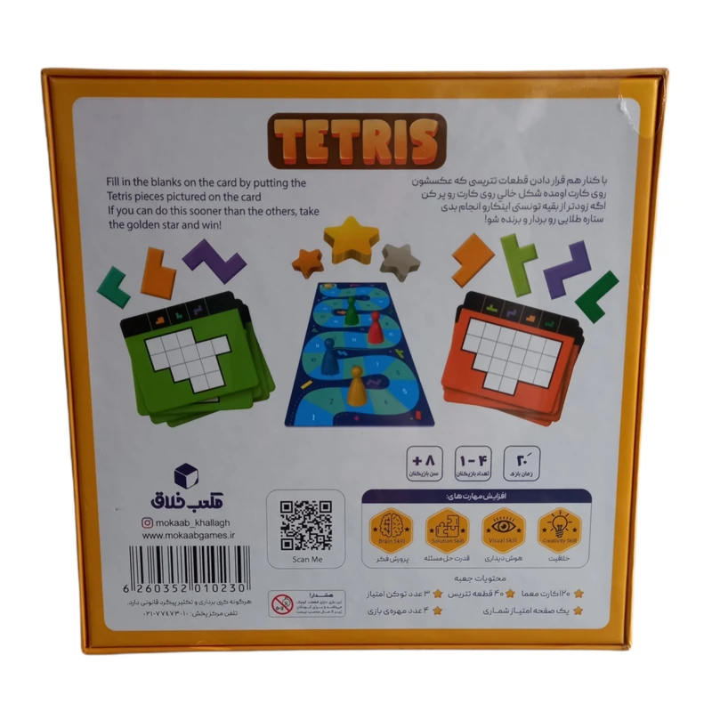 با کنار هم قرار دادن قطعات بازی فکری تتریس مکعب خلاق که عکسشون روی کارت اومده شکل خالی روی کارت رو پر کن اگر زودتر از بقیه تونستی این کار رو انجام بدی ستاره طلایی رو بردار و برنده شو! فکرتو بکار بنداز، وقت زیادی نداری!