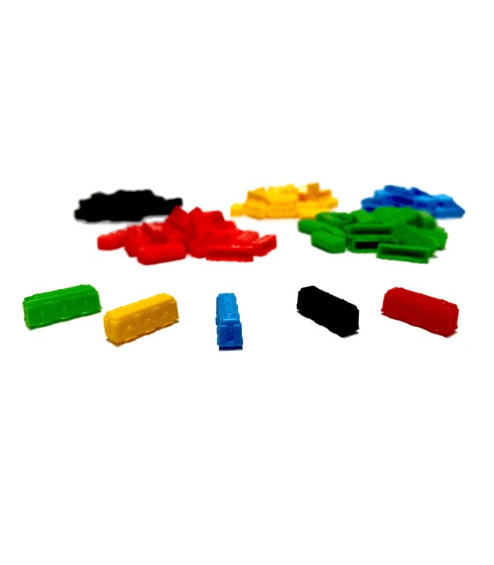 • ۵ عدد مهره چوبی امتیاز شمار: برای هر بازیکن یک مهره چوبی کلاسیک و باکیفیت برای ثبت امتیازات روی نوار امتیاز شماری دور نقشه در نظر گرفته شده است.