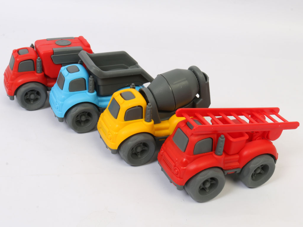 این اسباب بازی ماشین های راهسازی در چهار طرح کامیون، آتش نشانی، میکسر و تانکر عرضه شده است و در این اسباب بازی قسمت بار کامیون و نردبان ماشین آتش نشانی متحرک است و کودک می تواند آن ها را با دست حرکت دهد.